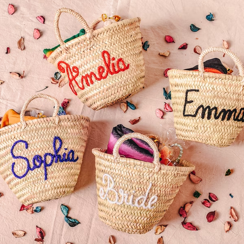 אישית אישית שושבינה שקיות קש סלי ומגשים ארוג קש שקיות tote קיץ חוף לחתונות, ימי נישואים